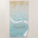 This beach towel design in the soft colours of sea and sand allows you to easily add your own name and text using the provided template. The simple starfish image on a distressed, watercolor background is highlighted by a wave accent in aqua and white. If you aren't fortunate enough to have a beach house or cottage, just change the text on this fun design to whatever suits your needs. Search ID623 to see coordinating seaside elements and additional products with this design.