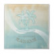 This ceramic tile design in the soft colours of sea and sand allows you to easily add your own name and text using the provided template. The simple palm trees image on a distressed, watercolor background is highlighted by a wave accent in aqua and white. If you aren't fortunate enough to have a beach house or cottage, just change the text on this fun design to whatever suits your needs. Search ID623 to see coordinating seaside elements and additional products with this design.