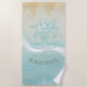 This beach towel design in the soft colours of sea and sand allows you to easily add your own name and text using the provided template. The simple palm trees image on a distressed, watercolor background is highlighted by a wave accent in aqua and white. If you aren't fortunate enough to have a beach house or cottage, just change the text on this fun design to whatever suits your needs. Search ID623 to see coordinating seaside elements and additional products with this design.