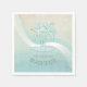 This paper napkin in the soft colours of sea and sand allows you to easily add your own name and text using the provided template. The simple palm trees image on a distressed, watercolor background is highlighted by a wave accent in aqua and white. Search ID623 to see coordinating seaside elements and additional products with this design.