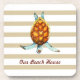 Beach House Pillow with Sea Turtle on Tan Stripes Coaster