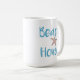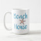 Simple typography in sea blue "Beach House" with starfish coffee mug. Perfect for the beach lover, beach, lake or cottage get a way or the vacation rental beach property resort. Design from Jenn's Emporium.
