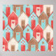 Watercolor pattern of beach retro house, red, blue and white house