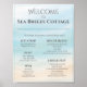 Designed for beach houses, coastal cottages, and vacation rentals, this coastal guest information poster blends soft seaside color tones with a clean, welcoming layout. Featuring a calming ocean-inspired gradient and subtle wave detail, it provides essential stay information at a glance while enhancing a relaxed, coastal interior aesthetic.