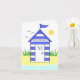 Beach Hut, painted blue, standing in the sand dunes on the beach in the summer sun.