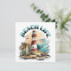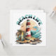Beach House 'Blank Art Card. Frame it or send it! Illustration of a beachy scene with lighthouse, surfboards, palm trees and dolphin.