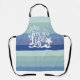 All-over-print apron with text, "Beach Life" on a blue ombre' nautical striped background. Add your name or initial if you choose.