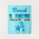 Tapestry with the caption "Beach Life" embellished with an image of a sandy beach and palm trees, and a seahorse and starfish
