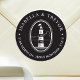 Minimal black return address stickers tailored to a nautical-style wedding. They feature a unique nautical-style lighthouse illustration surrounded by your information.