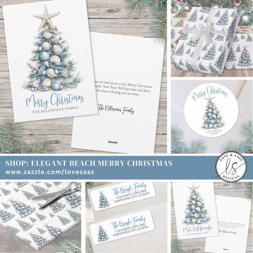 Elegant Blue & White Shell Beach ChristmasDesigned by JJ Marie