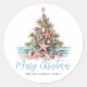Beach Christmas Tree Classic Round Sticker. Spread some coastal cheer with this festive round sticker featuring a beach-inspired Christmas tree made of seashells and topped with a starfish. Perfect for sending beachy holiday wishes, this sticker is great for anyone living in tropical places like Hawaii or for those who love a coastal vibe.
