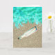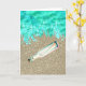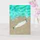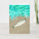 Ocean water washing a message in a bottle onto the sparkling sand beach shoreline.in colours of teal and gold