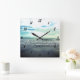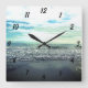 Beach Ocean Sea Abstract Blue Grey Artistic Trendy Square Wall Clock