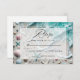 Teal blue and beige ocean and sea beach destination wedding rsvp response card. Features a unique coastal beach and seashells background with script and typography font. Personalise this with your own details to make it your own. Perfect for a summer beach theme wedding!