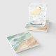 The coasters are gorgeous, a quality feel and heavy weight. They look like a precious archeological find. A rustic stone juxtaposed with a modern floral black and white print. I like the way the print goes slightly imperfect on the cut stone edges giving them a kind-of natural beauty.