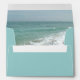 Ocean Shoreline Envelopes, beautiful ocean scene background for use with beach wedding invitations. Great envelope for your destination wedding, cruise wedding or beach wedding. Aqua turquoise water with white crashing waves and sand. Customise online with your info, then hand-write or print individual names on each envelope.