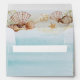 These are the matching envelopes for the Beach Ocean Tropical Watercolor Wedding Invitations, and feature a blue watercolor ocean background, with seashells in one corner, and the return address on the flap. Find matching products in the collection.