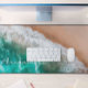 Where the turquoise ocean waters meet the beach sand on the oceanfront shoreline. I calming summer tropical carribean design.