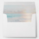 Pastel beach ocean waves with a pale yellow sunset over a peach and teal blue sun reflection printed inside an envelope with custom return address in modern and elegant script font perfect for a beach destination wedding or beach party invitation.
