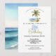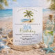 Celebrate a remarkable milestone with a beautifully designed tropical beach birthday invitation that captures the relaxed elegance of an oceanfront celebration. Perfect for honoring a 100th birthday, this coastal-inspired design features a serene seaside theme that brings together warm sand, gentle ocean waves, and a graceful palm tree for a timeless island atmosphere. The soft, airy color palette and refined typography create a sophisticated yet cheerful invitation ideal for a once-in-a-lifetime celebration.