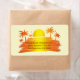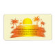 Modern, fun, tropical beach scene with a sunset and palm trees for your personal or business return address labels, or as a versatile sticker. Background is a sunny light yellow or change to white or any colour, or change the wording colour, or delete to leave plain or delete to write on later. Another option is to change wording colour to black or any dark colour, or delete wording, and write your own promotional word later, with a pen or marker, or to add the bride and groom's name for a wedding or on the thank you gift bags.
