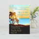 Beach Palm Trees and Ocean Sunset Destination Wedding invitations. Use this template to customise your own personalised beach wedding invitations or beach party event invites. Includes blue, aqua, yellow, orange, bronze and black colours for the perfect summer beach wedding.