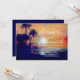 Hand painted beach engagement party invitations with seascape, palms and light strings.