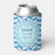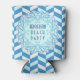 This pretty, personalised beach house drink can cooler has a blue-and-white herringbone pattern. The bold shell motif has a classic Art Deco stylised look, complete with starfish and a faint white anchor in the middle. In a vintage 1920's font, easily add your name. Even the words "Beach Party" are customisable.
