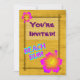Custom Beach Bum party invitations with a pink hibiscus flower on a faux bamboo fram on a reed mat. Click Customise It to change fonts, colours, even save your design for later.