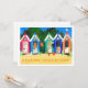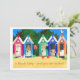 A Beach Party Invitation with row of beach huts from a handpainted paper collage by Judy Adamson. The reverse of the card is left blank for you to add the details and I can easily change the front cover text on request through my store.