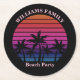 Beach Party Tropical Sunset Palm Trees Black Round Paper Coaster
