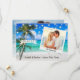 This stylish beach palm tree destination wedding Save the Date features your own photo and the cute saying, "It's happening" in elegant hand lettered calligraphy script (which can be changed to your own text,) on a tropical beach background with tropical palm trees and string lights. A wonderful way to invite your guests to your tropical seaside or ocean front location wedding in Hawaii, Florida, California, Mexico, or other destination wedding location.