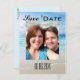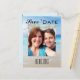 Save the Date postcard featuring your own photo framed by a painting of a beach. Great for a beach wedding, destination or cruise wedding or a wedding with a nautical theme.