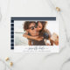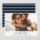 Nautical stripe design photo wedding save the dates for the modern couple and their beach wedding. Customise with your photo, names, wedding date and location.