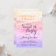 A modern, pretty Beach pink watercolor string lights Sweet 16 birthday party invitation with pink purple yellow and orange sunset watercolor string lights . Perfect for an outdoor, beach theme Sweet sixteen,