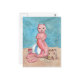 Cute little mermaid cat sitting on a beach ball on the beach with a sandcastle