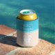Beach Please Modern Abstract Colour Block Monogram Soda or Beer Can Cooler - Text can be changed or deleted. Elegant & minimalist sand, sea, and sky nautical inspired design features a pair of simple monogrammed flip-flops on the beach. Chic accessory with funny quote for the beach lover. Its trendy yet timeless coastal design is a cute accessory for a beach or lake house vacation. Makes a tasteful keepsake gift for a family summer pool party, tropical destination wedding bridal party, girl's beach getaway weekend, or retirement party gift idea. Let the rest and relaxation begin. Life is better at the beach.