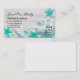 Beautiful beach theme real estate business cards designed with a seashells on the beach graphic, a house symbol, and editable text space you can organise and personalise your way. Designed as a business card template for a Realtor, broker, or beach front property theme in turquoise, white, and green.