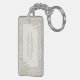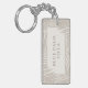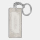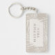 A very elegant and modern beach vacation rental house keychain with a neutral tan tropical palm leaf pattern with the house or villa name and property manager contact information printed in the design.