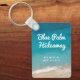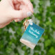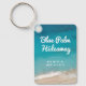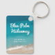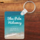 Create a personalised, custom-printed low quantity order keychain for your beach vacation rental property featuring a deep turquoise teal blue ocean sand beach surf and modern, retro typography that you can use to check-in guests at your coastal rental house, condo, room, apartment, or give away as guest merch keepsakes.