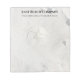 Beach sand background note pad with custom text at the top. Include the business name and employee name in printed font. A sand dollar is partially covered by blowing beach sand in this background image.