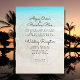 Sand dollars wedding reception invitation for the newlyweds after their private ceremony. Tropical blue water and beach sand is the background with big sand dollar images on both sides. Include marriage information, such as date and location and then invite guests to party with the couple.
