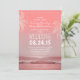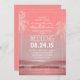 Palm Trees, Beach Waves Sea Wedding Invitation. Pretty elegant and simple with a handwritten fonts and pink old paper background