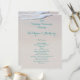 Beach sand wedding ceremony programs with custom, with turquoise coloured text on both sides. This is printed on a larger size, vertical stationery.