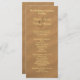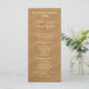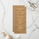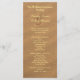 Tall, beach sand wedding program. Customise on both sides of long paper with light yellow text over brown sand image. Include the place of wedding, names of the wedding party, and a "thank you" note to guests.
