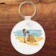 A child having fun building a beach sandcastle. This design looks really effective on this Keychain