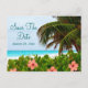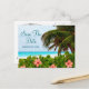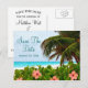 This romantic Hawaiian design features a photo of a white sand beach with the ocean in beautiful shades of blue. Palm trees and hibiscus flowers blow gently in the breeze. Personalise this postcard with the details of your upcoming wedding. These are great for Hawaii, beach theme or destination weddings.