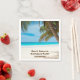 Package of 50 white paper cocktail napkins with an image of a pristine beach, a palm tree, and an impossibly blue sky. Optional text. See matching cloth napkin, cloth placemat, paper placemat and coasters. See the entire Shipwreck Napkin collection in the FOOD/BEV | Linens section.