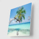 10.75” x 10.75” acrylic wall clock with an image of a pristine beach, a palm tree, and an impossibly blue sky. See the entire Shipwreck Clock collection in the DÉCOR | Clocks section.