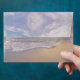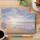 Speciality envelopes with a beach scene and return address optional text. Sunrise over a beach, with waves lapping the shore is the scene that covers 5x7 inch (Size A7) envelopes. Blue script font is used for the return address text on the front. Choose basic or linen paper. A tan coloured graphic lines the inside. Sorry, but individual mailing addresses cannot be added. The design is perfect for beach weddings, special summer events, or for everyday correspondence.